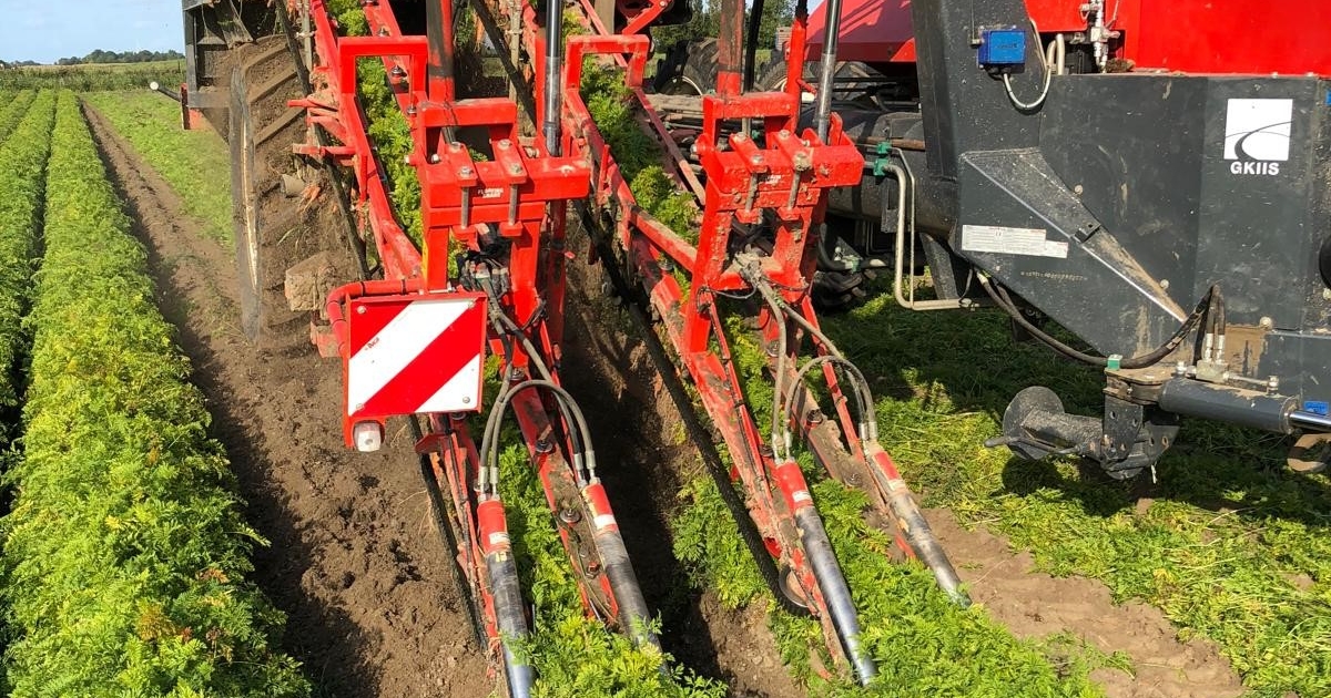 • Rodung von geköpftem Wurzelgemüse mit Karokettenroder